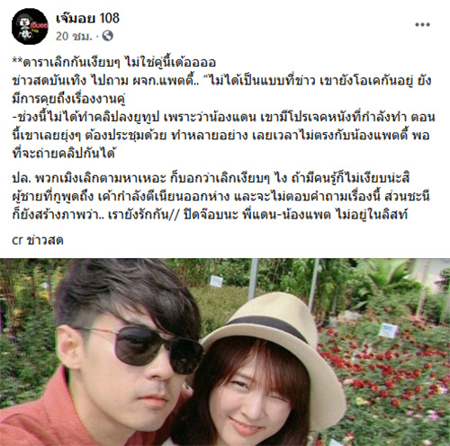ជាក់ស្ដែង (28 មករា 2021) សាម៉ីខ្លួនម្ចាស់ផេក Jemoy 108 ក៏បានចេញមកបញ្ជាក់ពីករណីខាងលើហើយថាគូរបស់ Dan- Pattie មិនបានស្ថិតនៅក្នុងបញ្ចីពត៌មាននេះទេ បញ្ចាក់អះអាងថាមិនមែនជាគូនេះយ៉ាងពិតប្រាកដ ព្រមទាំងមានបង្ហើបប្រាប់ពីពាក្យរបស់អ្នកគ្រប់គ្រងផ្ទាល់ខ្លួនរបស់ Pattie ដែលបានចេញមកផ្ដល់បទសម្ភាសន៍ផ្សព្វផ្សាយជាសាធារណៈថា ទាំងគូនៅអូខេធម្មតា នៅមាននិយាយដល់ការងារជាគូ ចំណែកដែលមិនបានធ្វើវីឌីអូយូធូបក៏ព្រោះកំលោះ Dan កំពុងរវល់និងរឿងគម្រោងថតរឿង ដូច្នេះហើយទើបធ្វើឲ្យពេលវេលាទាំងពីរនាក់មិនត្រូវគ្នា