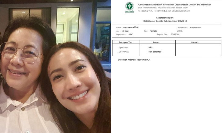 Taew Natapohn បានបង្ហាញលទ្ធផលត្រួតពិនិត្យកូវីដ-19 របស់អ្នកម៉ាក់ លទ្ធផលចេញមកអវិជ្ជមានគ្មានកូវីដ ព្រមទាំងបានត្រលប់មករស់នៅក្នុងផ្ទះជុំគ្នាវិញហើយ តែនៅរយៈឆ្ងាយពីគ្នាដោយនៅមួយជាន់ម្នាក់