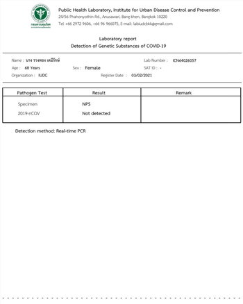 ដោយមុននេះ Taew បានបង្ហាញលទ្ធផលពិនិត្យរបស់ខ្លួនតាំងតែពីខ្លួនបាននៅដាច់ដោយលែកតែឯងរហូតមកដល់ 14ថ្ងៃ នាងបានធ្វើការត្រួតពិនិត្យម្ដងទៀតលទ្ធផលនៅតែអវិជ្ជមាន អាចនិយាយបានថាជាដំណឹងល្អរបស់តារាស្រី