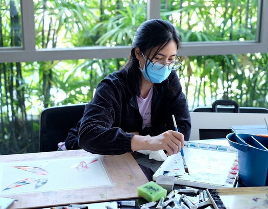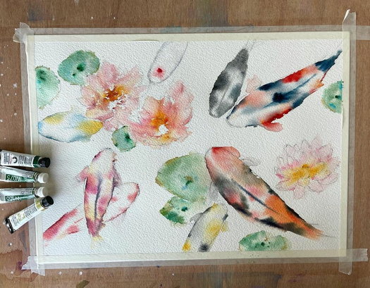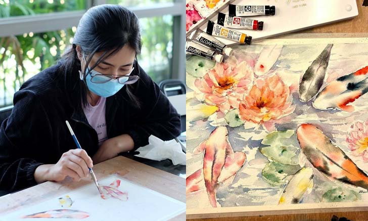 ហើយអ្វីដែលអ្នកនាង Jui ធ្វើបានល្អមករហូតនោះគឺមិនបណ្ដោយពេលវេលាកន្លងផុតទេគឺនាងយកពេលមកកំសាន្ដជាមួយសិល្បៈ យ៉ាងជាក់ស្ដែងដែលសាម៉ីខ្លួនបានក្រោកឡើងមកចាប់កាន់ជក់ លាយទឹកពណ៌គូរូបបានយ៉ាងល្អនិងប្រកបដោយការតាំងចិត្តបំផុត ព្រមទាំងសរសេរឃ្លាថា “រូបដំបូងសម្រាប់ឆ្នាំនេះ ត្រីដែលសុភាពបំផុត ត្រី Koi #jooypainting #សិល្បៈកំសាន្ដអារម្មណ៍របស់ Jui”