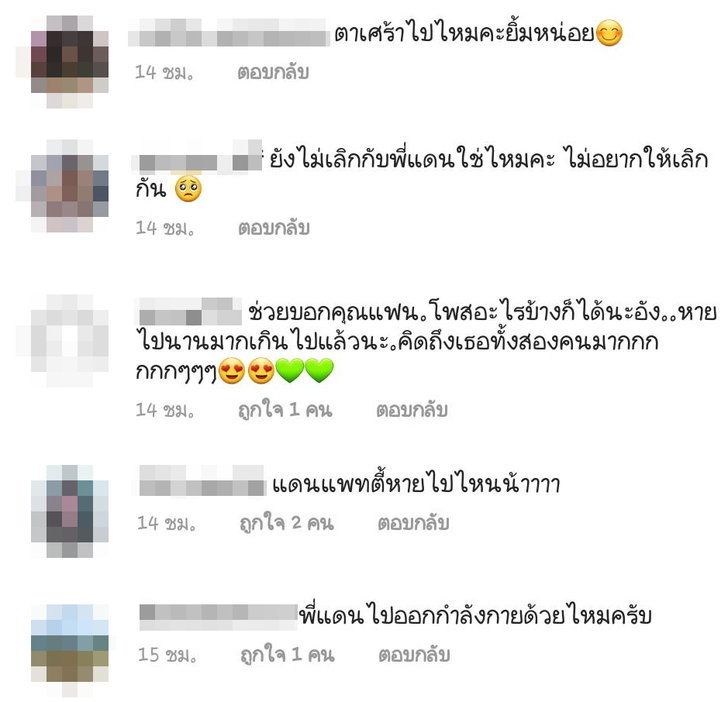 ហើយប្រាកដណាស់ថាបណ្ដារអ្នកគាំទ្រដែលកំពុងចាំមើលរូបភាពរបស់តួឯកស្រីប្រចាំដួងចិត្តយូរហើយ គ្រាន់តែឃើញភ្លាមក៏៏ប្រញាប់ចូលទៅ comment ភ្លាមៗហើយសរសើរពីភាពស្រស់ស្អាតរបស់ Pattie ជាច្រើនអើងកង ព្រមទាំងមានសំនួរសំខាន់ដែលត្រូវបានផ្ញើរចូលទៅជាច្រើនមិនចាញ់គ្នា ទាក់ទងទៅនិង Dan សង្សារូបសង្ហា ដោយសំនូរសួរថា បង Dan ទៅណា? , បង Dan ទៅហាត់ប្រាណជាមួយដែលទេ?….ហើយនៅមានច្រើនទៀត
