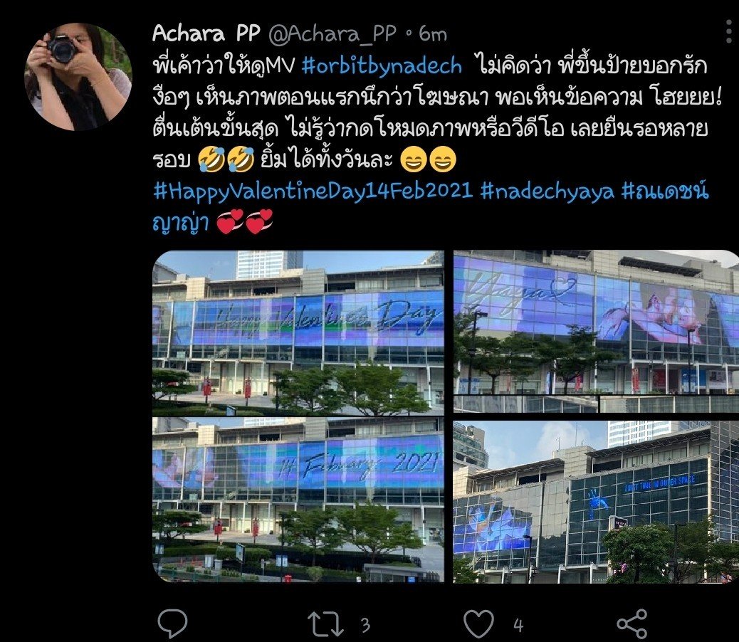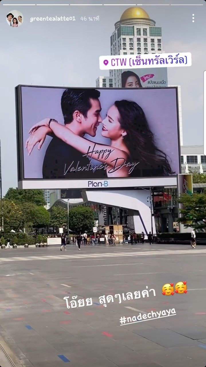 បន្ទាប់ពីនៅលើបណ្ដាញអនឡាយមានការចែកចាយរូបភាពនិងវីឌីអូដែលបានរក្សាទុក ក្នុងបរិវេនផ្សារទំនើបកណ្ដាលទីក្រុងបាងកក់ ដោយមានការបង្ហាញឲ្យឃើញរូបភាពរបស់ Nadech ជាមួយនិងតារាស្រីយ៉ាង Yaya ផុសនៅលើកញ្ចក់ LCD ខ្នាតធំខ្នាតយក្ស ហើយនៅលើកញ្ចក់មានឃ្លាថា “Happy Valentine’s Day Yaya 14 february 2021 FIRST TIME IN OUTER SPACE”