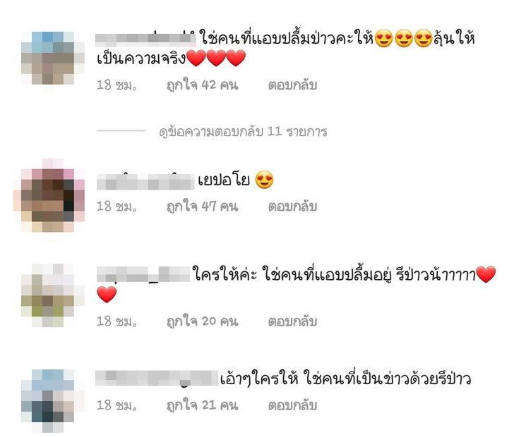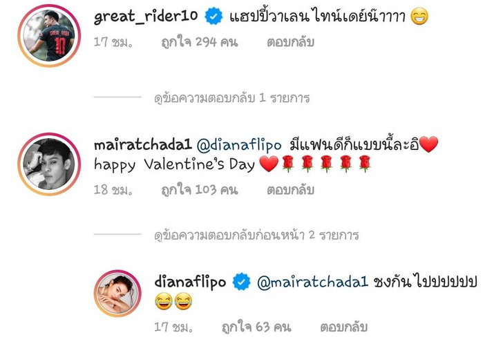 មានអ្នកនៅក្នុងវិស័យសិល្បៈនិងក្រៅគ្រប់បណ្ដារអ្នកគាំទ្រសូម្បីតែជាងតែងមុខល្បីឈ្មោះប្រចាំប្រទេសថៃក៏ចូលទៅបើកឆាកដោយការសួរថា “មានសង្សាល្អក៏បែបនេះហើយ happy Valentine’s Day” ខណៈដែល Great តារាឯកប្រុសស្និតស្នាលក៏ចូលទៅបន្ថែមទៀតថា “happy Valentine’s Day ណា”
