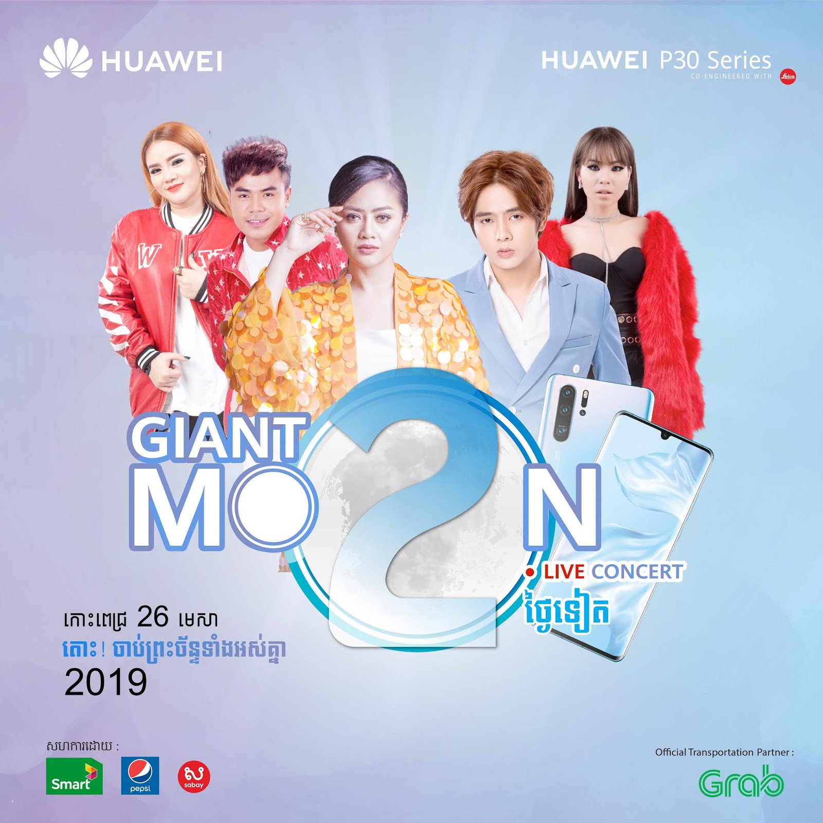 ភ្នំពេញ ថ្ងៃទី 24 មេសា ឆ្នាំ 2019 ៖ មហាព្រឹត្តិការណ៍ការប្រគំតន្រ្តីព្រះច័ន្ទពេញវង្សដំបូងគេបង្អស់នៅប្រទេសកម្ពុជា Giant Moon Live Concert ដែលនាំមកជូនដោយ Huawei P30 សេរ៊ី កាន់តែខិតជិតមកដល់ហើយ ដែលនៅសល់ត្រឹមតែពីរថ្ងៃទៀតប៉ុណ្ណោះ។ ត្រៀម ស្រែកហ៊ោកញ្ចៀវ រាំចង្វាក់ EDM ក្រវីជាមួយអំពូល LED ទស្សនាការប្រគំតន្ត្រីក្នុងពិភពភ្លើងពណ៍ចំរុះ និងជួបជាមួយកំពូលតារាចម្រៀង ដែលជាអាយដូលក្នុងដួងចិត្តអ្នក នៅថ្ងៃសុក្រទី 26 មេសា នៅមុខសាលមហោស្រពកោះពេជ្រ ចាប់ពីម៉ោង 4 ល្ងាចតទៅ!