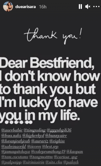 ចាត់ទុកថាជារឿងរ៉ាវល្អៗចំពោះស្នេហាផ្អែមល្ហែមរបស់កញ្ញា Dew arisara ត្រលប់មកស្រស់ស្រាយជាថ្មីម្ដងទៀត ផុសរូបដូចគ្នាជាមួយនិងសង្សា Sebastian Lee ដែលមានរឿងរកាំរកូសកាលពីថ្ងៃនៃក្ដីស្រលាញ់កន្លងមក
