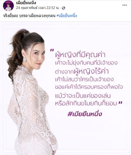 Thanya បង្កើតផេកប្រពន្ធលេខ 1សម្រាប់ធ្វើជាទីព្រឹក្សារបបស់បណ្ដារភរិយាដែលស្វាមីលួចក្បត់ចិត្ត ប្រកាសប្រយោគសំខាន់ៗបែបចាក់ដោតថា “មានក្ដីស្រលាញ់ល្អៗគួមានតែមួយ”