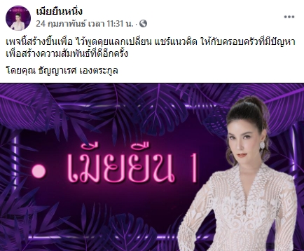 នៅពេលថ្មីៗនេះ Thanya រាជនីប្រពន្ធដើមឈរលេខ 1 បានសម្រេចចិត្តបង្កើតផេកដែលមានឈ្មោះថា “ប្រពន្ធលេខ 1” ដោយប្រាប់ថាប្រហែលជាទំនងនិងហើយ ជាការយល់ឃើញរបស់មនុស្សផ្សេងគ្នាដែលយល់ពីអារម្មណ៍របស់ពួកគេ ព្រមទាំងប្រាប់ថាផេកខាងលើទុកសម្រាប់ជាទីកន្លែងចែករំលែករឿងរ៉ាវនិងផ្ដល់ការព្រឹក្សាព្រមទាំងកំលាំងចិត្តអោយគ្នាទៅវិញទៅមក ក្រៅពីនេះផេកនៅមានផុសប្រាប់ថា “#ប្រពន្ធលេខ 1 ប្រពន្ធដើមមិនចោលគ្នា បង្កើតឡើងដើម្បីជួយបេះដូងក្រុមប្រពន្ធដើម អោយត្រលប់មករឹងមុំា ក្រោកឈរតស៊ូពោរពេញទៅដោយកំលាំង ហើយផ្ដល់ជូនគ្រប់ពាក្យប្រឹក្សា អោយកូនប្រពន្ធដើមដែលត្រូវគេបោះបង់ ព្រោះយើងយល់ពីចិត្តរបស់អ្នក”