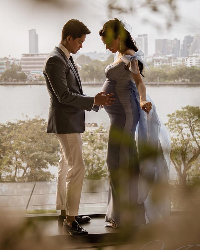 ដោយ Sririta បានសរសេរឃ្លាខ្លីៗទៀតថា “Embracing” ជាមួយរូបភាពរបស់អ្នកម៉ាកដៃទ្រពោះដោយក្ដីស្រលាញ់ ចំណែងខាងប៉ាៗក៏ត្រៀមមកខណៈជាលោកប៉ា តាមឃ្លាថា “Call me daddy”