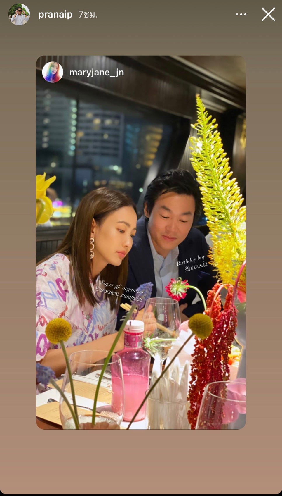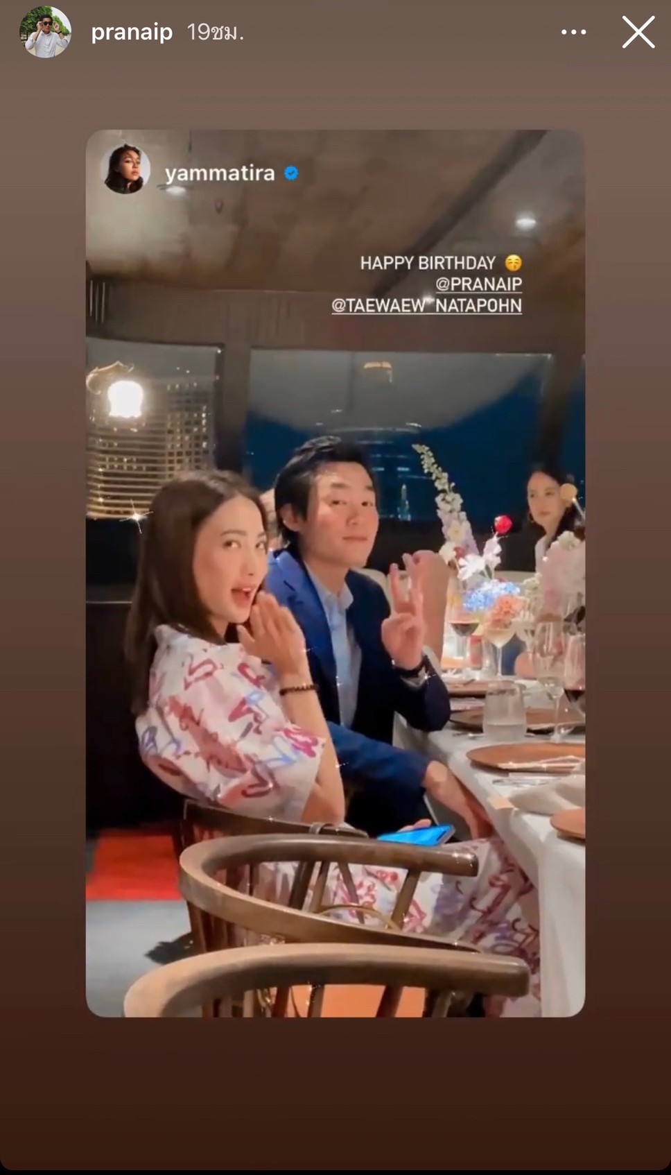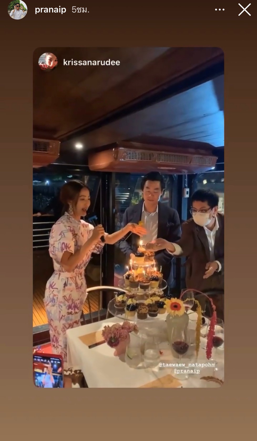 ដូចជាសកម្មភាពជាក់ស្ដែងនៅថ្ងៃកំណើតរបស់ហៃសូ Pranai ទាំងគូក៏បានចាប់ដៃគ្នាជប់លៀងលើទូកមើលទេសភាពមាត់ទន្លេដ៏សែនរ៉ូមែនទិចជាមួយគ្នា ព្រមទាំងមានប្រគល់ជូនបាច់ផ្កាទៀត បន្ដដោយភាពគួអោយស្រលាញ់របស់ Taew ដែលជាអ្នកបោះមេចាប់ផ្កើមកម្មវិធីរៀបចំ surprise សង្សាដើម្បីជប់លៀងថ្ងៃកំណើតរួមជាមួយមិត្កភ័ក្ដ ជាច្រើនទៀត ផ្លុំទៀននំខេកហើយញុំាអាហារលើទូកយ៉ាងមានក្ដីសុខ