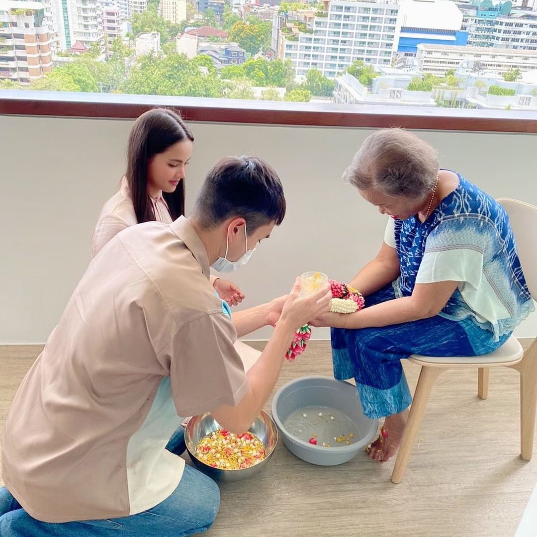 ជារូបភាពដែលគួអោយស្រលាញ់និងរំជួលចិត្តដល់ហ្វេនៗអ្នកគាំទ្រជាខ្លាំង រូបភាពរបស់ Nadech Kukimiya និង Yaya Urassaya ប្រកៀកប្រកើយគ្នាបែបផ្អែមល្ហែមៗ ចូលទៅលាងជើងសុំពរពីចាស់ទុំក្នុងថ្ងៃចូលឆ្នាំថ្មីតាមបែបប្រពៃណីថៃដើម្បីជាសិរីមង្គលក្នុងឆ្នាំថ្មីនេះ ដោយមានរូបភាពដែល Nadech ចូលទៅចាក់ទឹកលាងជើងសុំពរ អ្នកម៉ាក់កែវហើយនិងអ្នកម៉ាកប្លា គ្រប់គ្នាដែលបានឃើញហើយក៏នាំគ្នាចុចឡាយអោយភ្លាមៗតែម្ដង