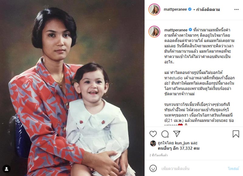 អាចនិយាយបានថាជាគូម៉ាក់កូនដែលស្និលស្នាលគ្នាខ្លាំង សម្រាប់គូរបស់តារាសម្ដែងស្រី Matt Peranee ហើយនិងអ្នកម៉ាក់ Phatchanee ដែលតែងតែមានរូបភាពទៅណាមកណាជាមួយគ្នារហូត ពេលកញ្ញា Matt ទៅធ្វើការ ទៅថតរឿងនៅតាមខេត្តក៏មានអ្នកម៉ាក់ទៅជួយមើលថែគ្រប់ពេល