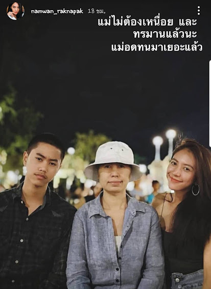 តារាសម្ដែងស្រីរូបស្រស់តួឯកស្រីកំពុងរះនាង Namwan Raknapak ថ្មីៗនេះខ្លួននាងទើបតែត្រូវទៅសម្រាកព្យាបាលជំងឺ Covid-19 ពេលនេះត្រូវមកដឹងដំណឹងបាត់បង់អ្នកម្ដាយទៀត។