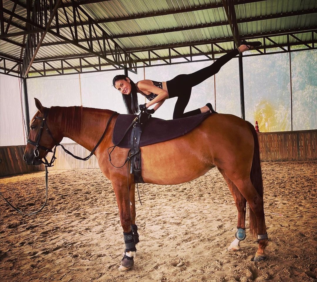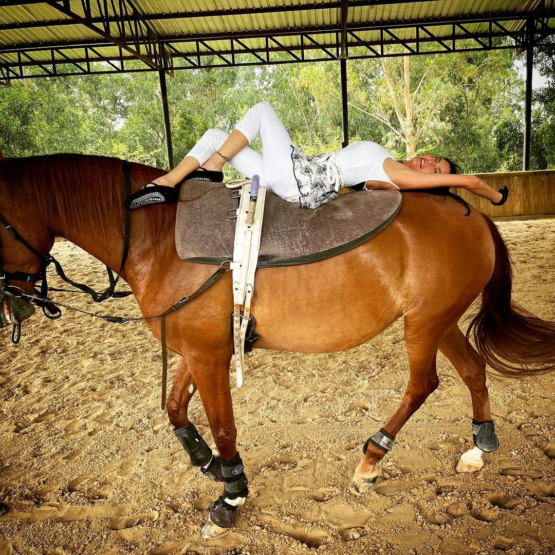 តារាសម្ដែងស្រីជើងចាស់សម្រស់ចាំនាង Pin Kejmanee ផុសធម្មតាគេមិនចាំ កាច់ក្បាច់កាច់រាងស្ទាយផុសរូបលើខ្នងសេះ។ ជាការថតរូបលេងកំសាន្ដក្នុងថ្ងៃសម្រាកលំហែកាយនាពេលថ្មីៗនេះរបស់នាង ដែលធ្វើឲអ្នកគាំទ្រសសើរពីភាពរឹងមាំបន់បែននៃរាងកាយរបស់តារាស្រីដួងនេះទោះជានាងមានអាយុរច្រើនហើយក៏ដោយ។