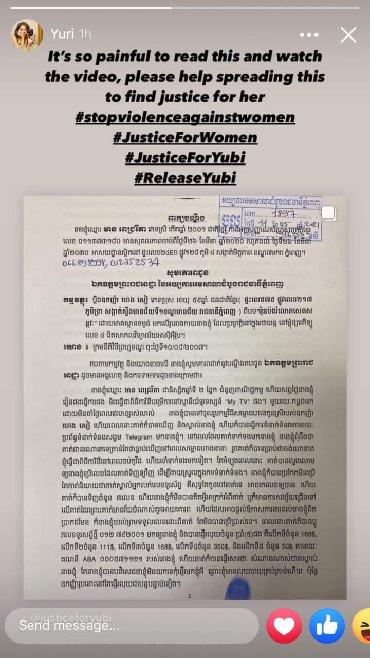 ខាងក្រោមនេះគឺជាការបង្ហាញ និងពាក្យពេជ្យដង្ហោយហៅស្វែងរកយុត្តិធម៌ជូននាង៖