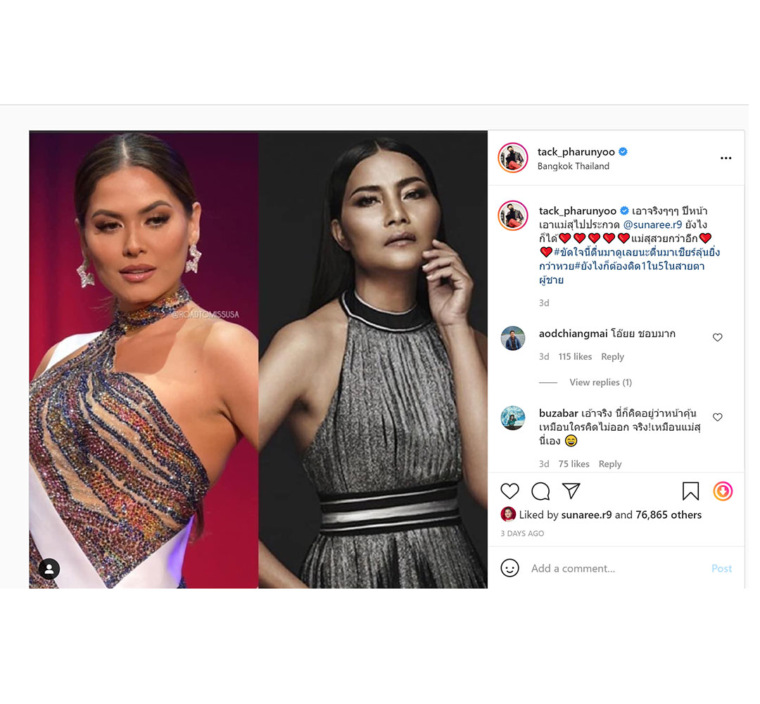 តារាប្រុស​ Tack Pharunyoo បង្ហោះរូបឌឺដល់បវរកញ្ញាចក្រវាល Miss Universe យ៉ាងសាហាវ!