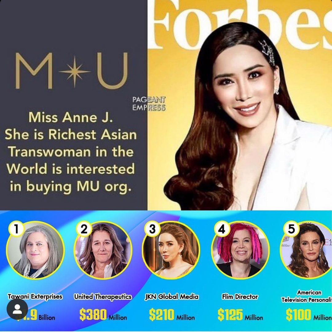 កាលពីពេលថ្មីៗនេះ មហាសេដ្ឋីថៃភេទទី៣មួយរូបបានប្រកាសទិញភាគហ៊ុន Miss Universe ចំនួនដល់ទៅ ៥១ភាគរយនៃភាគហ៊ុនសរុប Anne Jakrajutatip បាននិយាយថានឹងធ្វើការរៀបចំការប្រឡងនៅឆ្នាំក្រោយអោយមានភាពសុក្រឹត និងយុត្តិធម៌ជាងឆ្នាំនេះ។ ពីព្រោះលទ្ធផលមើលទៅហាក់ដូចជាមិនសូវយុត្តិធម៌ ដែលបណ្តាលអោយប្រជាជនថៃយ៉ាងច្រើនបានមានការមិនសប្បាយចិត្តនឹងលទ្ធផលដែលបានចេញមក៕