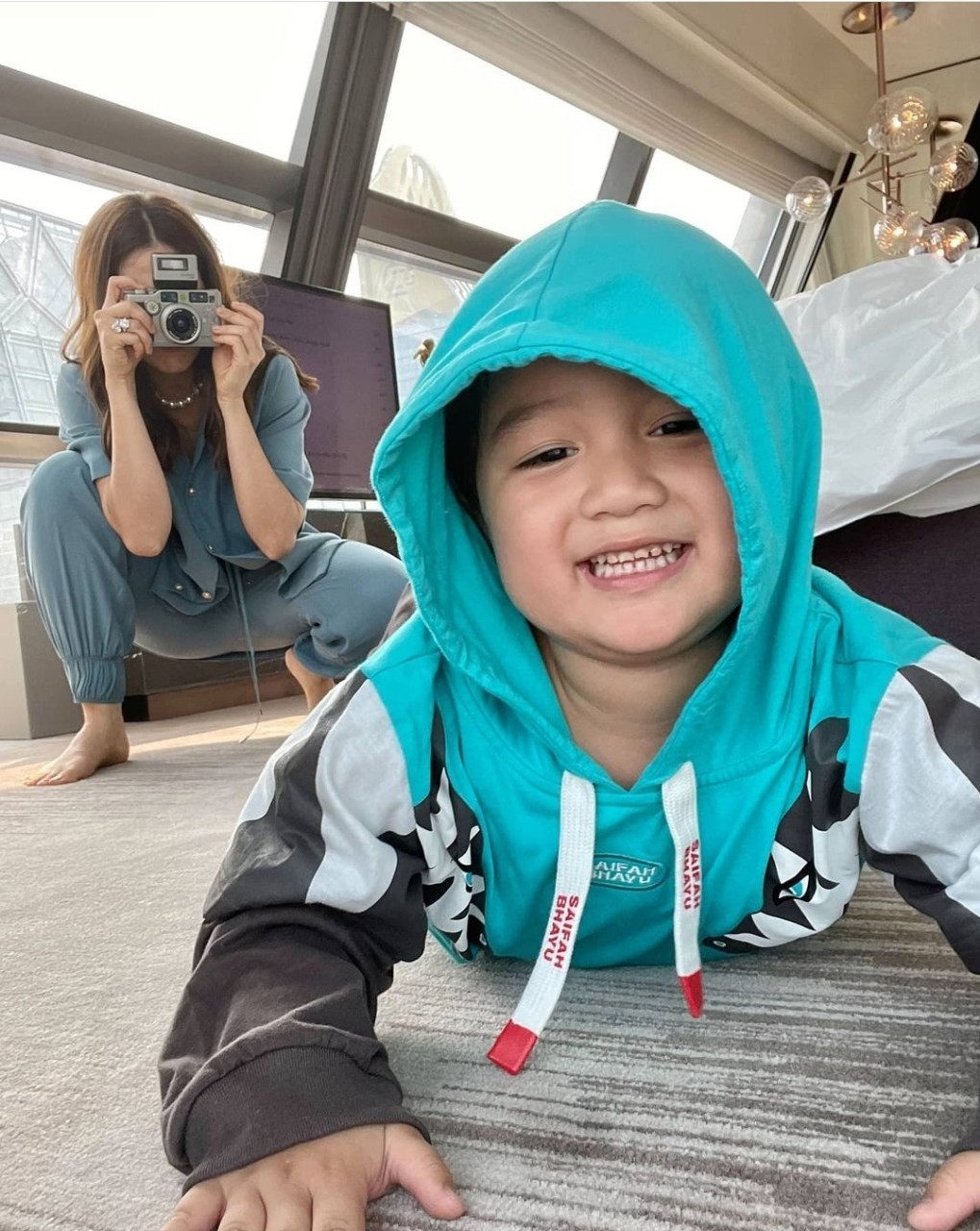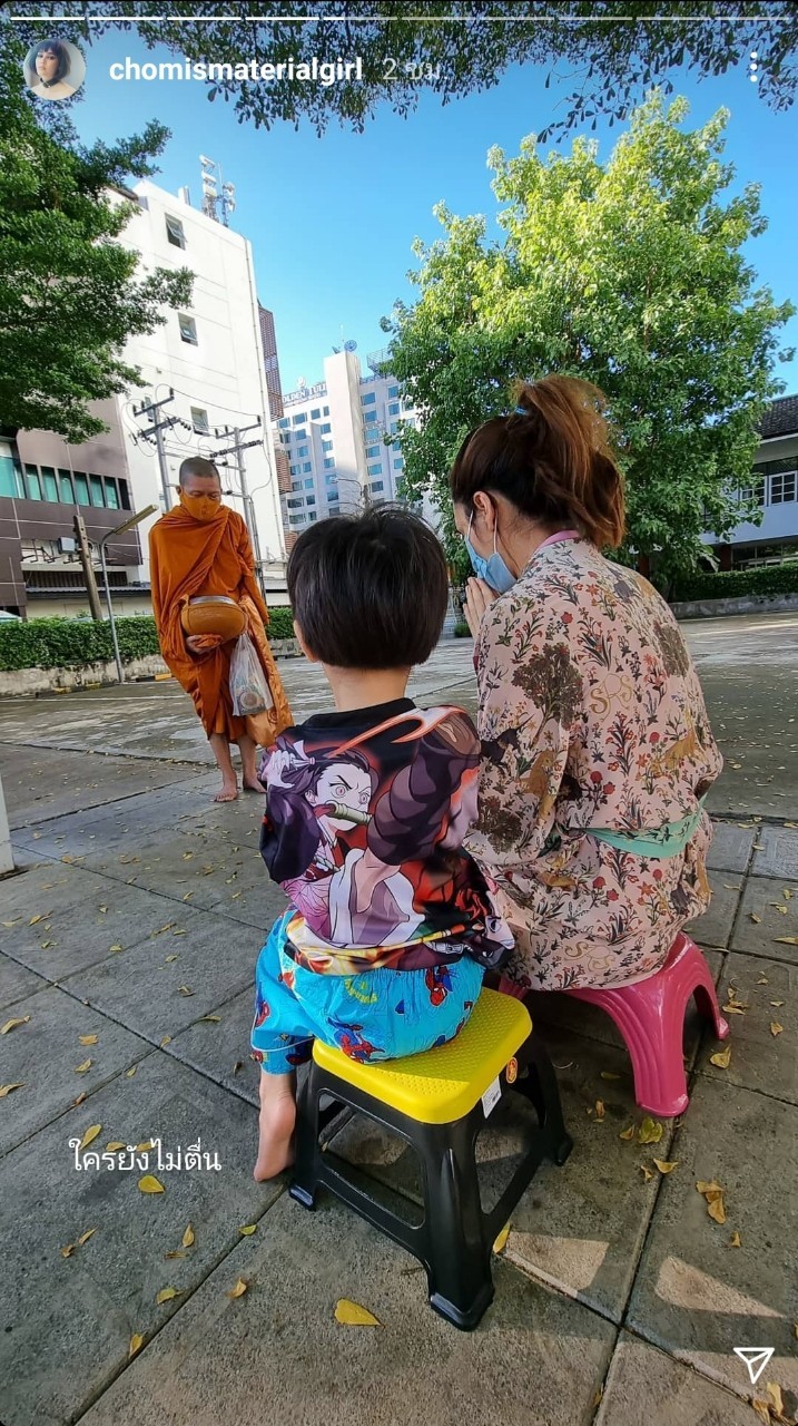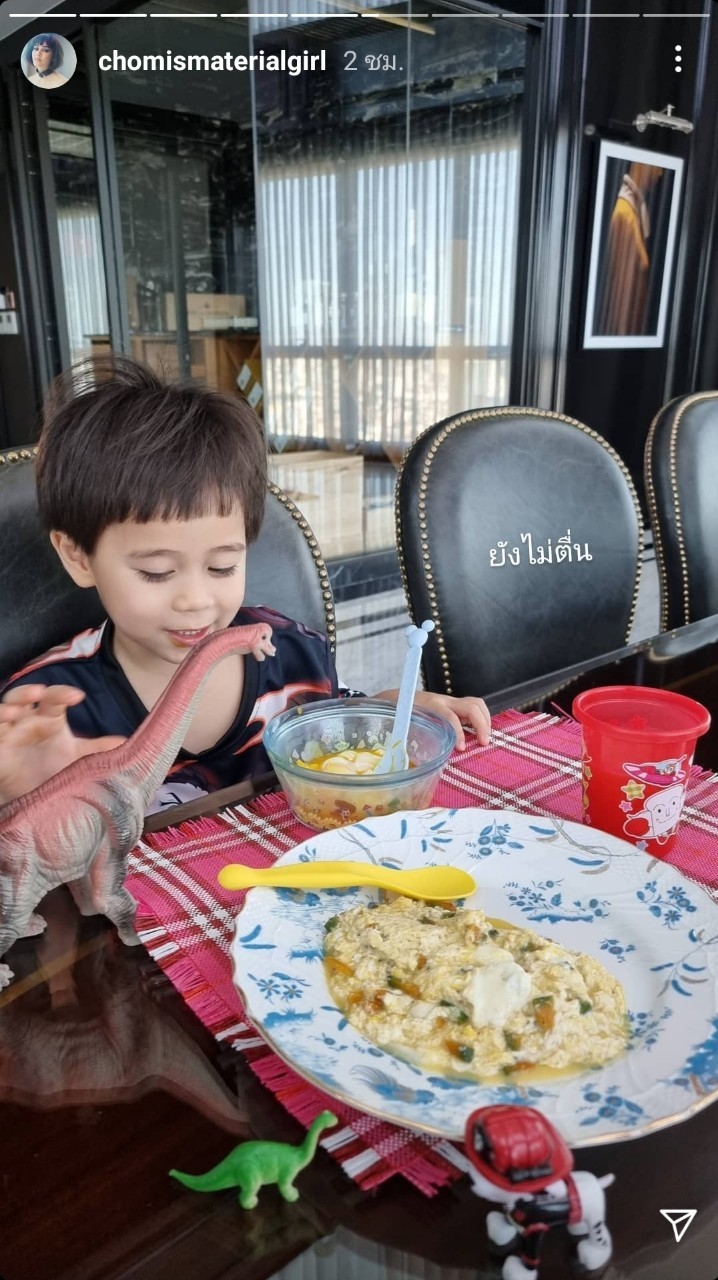 ហើយក៏ដូចតែពេលមុនចឹង Chompoo Araya បានបង្ហាញរូបភាពខណៈពេលទៅដាក់បាតជាមួយកំលោះតូចបង Shafy តាមរយៈ IG story @chomismaterialgirl ព្រមទាំងមានសរសេរឃ្លាទៀតថា “អ្នកណាមិនទាន់ក្រោកពីគេង” បន្ទាប់មកក៏ជារូបភាពដែល Shafy អង្គុយញុំអាហារពេលព្រឹកនៅតុអាហារ ដោយសាម៉ីខ្លួនបានសរសេរ Caption ដូចដើមទៀតថា “នៅមិនទាន់ភ្ញាក់ទៀត”