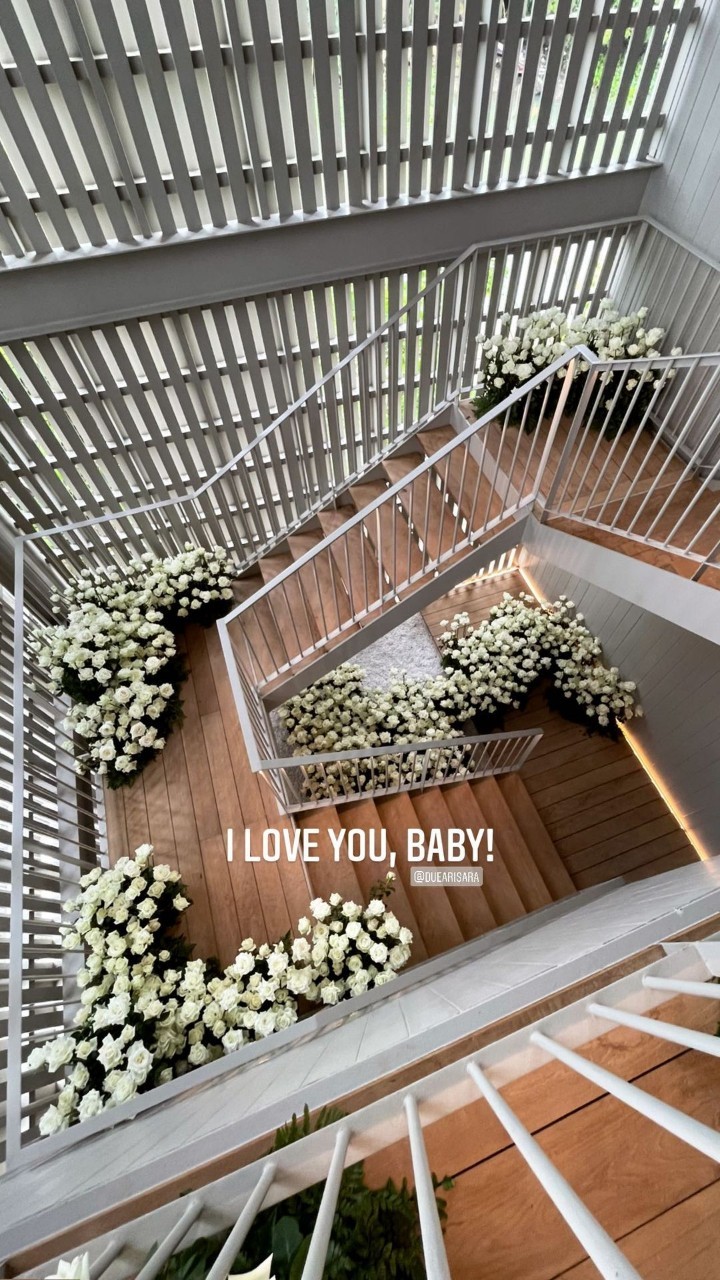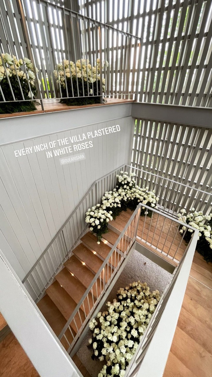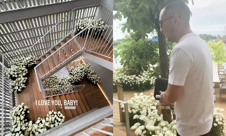 Dew Arisara ធ្វើអោយវីឡាទាំងមូលក្លាយទៅជាសួនផ្កាកូលាបពណ៌សគ្មានសល់ចន្លោះព្រោះតែជាថ្ងៃសំខាន់របស់សង្សា….! មានរូបភាព
