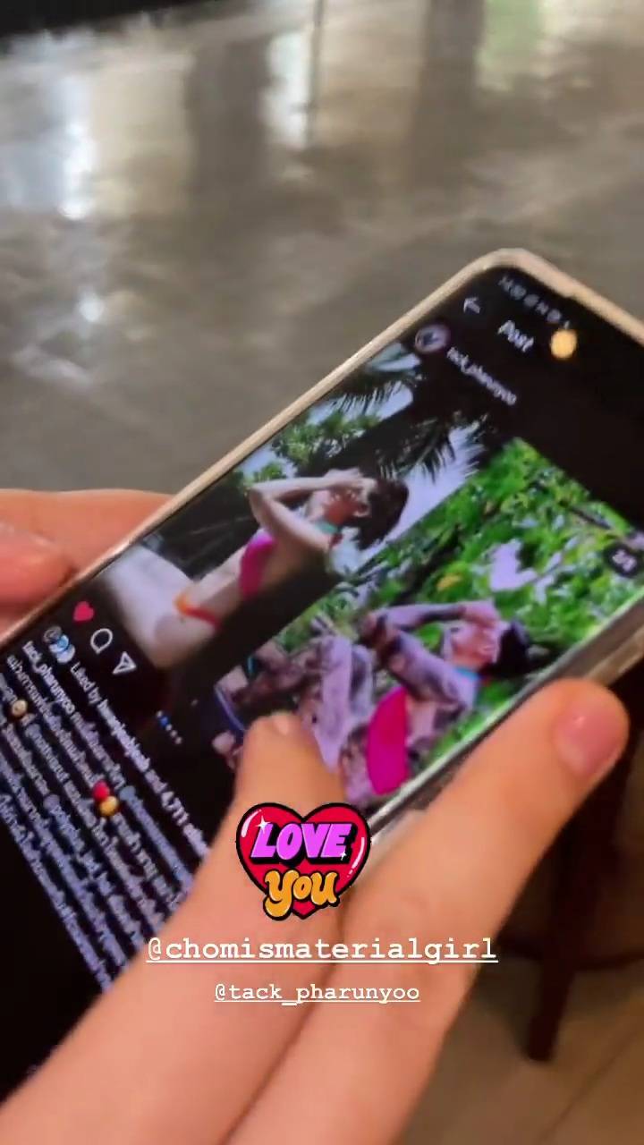ជាពិសេសនោះគឺវីដេអូជាក់ស្ដែងដែលនាំយកមកចែករំលែកនៅក្នុង IG story របស់ @ploychava ហៃសូស្រី Ploy-Chavaporn ដែលសាម៉ីខ្លួនបានថតទុកនៅពេលដែល Chompoo ឃើញការចំលងស្ទាយឈុតហែលទឹករបស់ Tac Pharanyu ជាលើកដំបូង