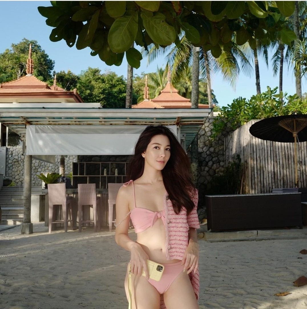 សចាំងនិងស៊ិចស៊ីទាំងព្រឹកតែម្ដងហើយ សម្រាប់តារាសម្ដែងស្រីមេម៉ាយចាយរាងនាង Woonsen Viritipa ដែលបានបង្ហោះរូបលេងជាមួយឈុតប៊ីគីីនីពណ៌ផ្កាឈូករឹតធ្វើឲសម្រស់ស្បែករបស់នាងលេចធ្លោរថែមទៀត។