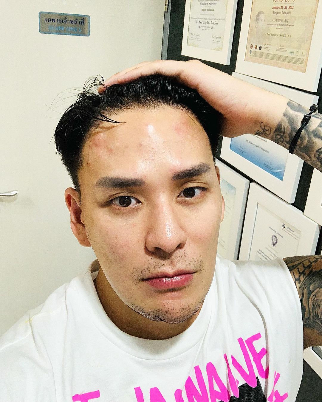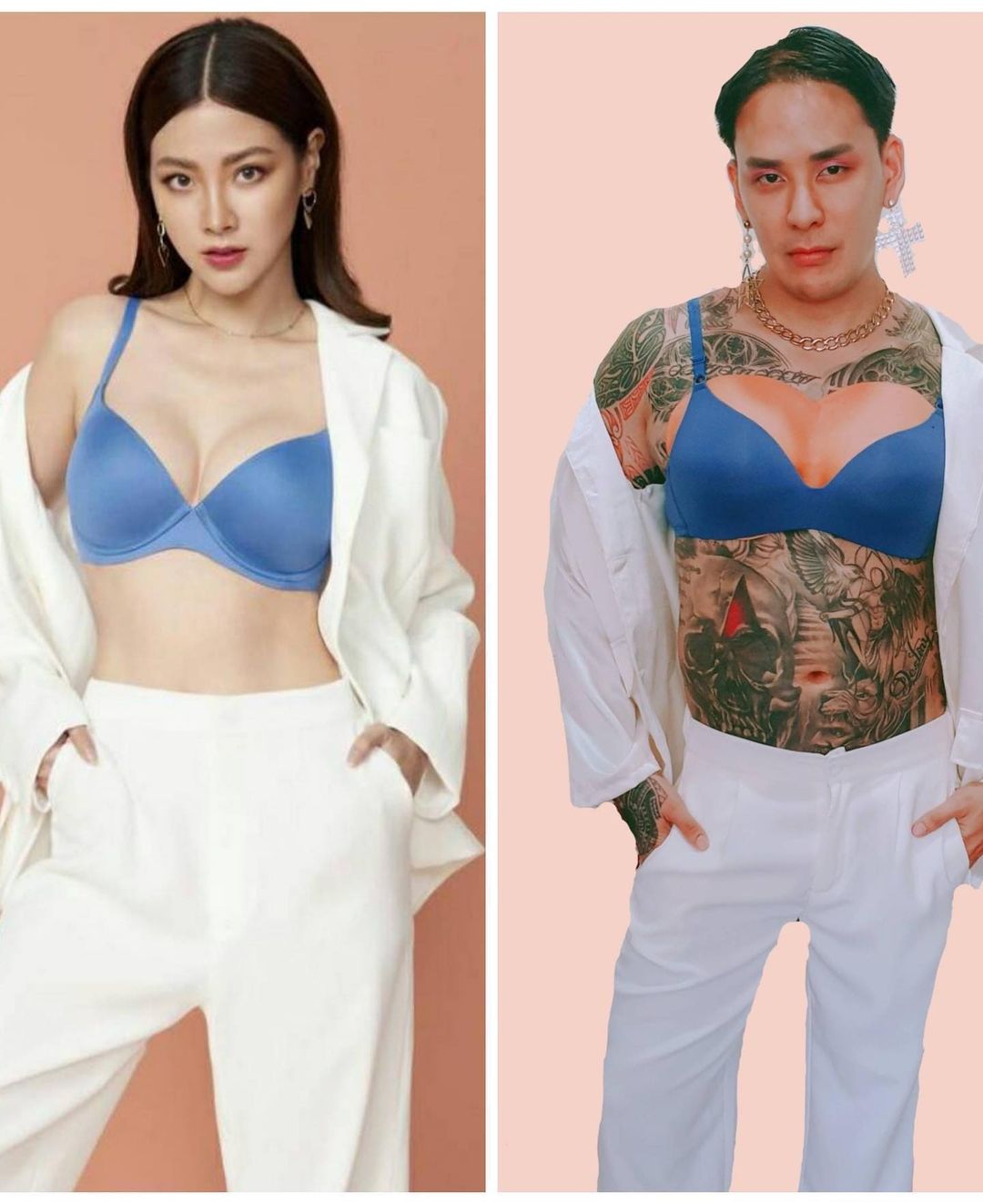 Tac Pharanyu លង់និងសម្រស់ខ្លួនឯងណាស់នៅមិនសុខក៏មកតែងខ្លួនយកស្ទាយតាមតារាសម្ដែងស្រី Baifern ដូចនោះដូចទាំងស្ទាយទាំងពណ៌អាវក្នុង