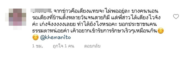 ក្លាយទៅជាប្រធានបទរិះគន់នៅលើបណ្ដាញសង្គមទៅវិញ សម្រាប់ករណីដែលតារាសម្ដែងស្រីល្បីឈ្មោះ Pancake Khemanit បានចេញមកផុសរឿងឆ្លងកូវីដ-19តាមរយៈ IG @khemanito ព្រមទាំងបញ្ជាក់ពីពេលវេលានិងទីកន្លែងយ៉ាងលម្អិតទៀតផង