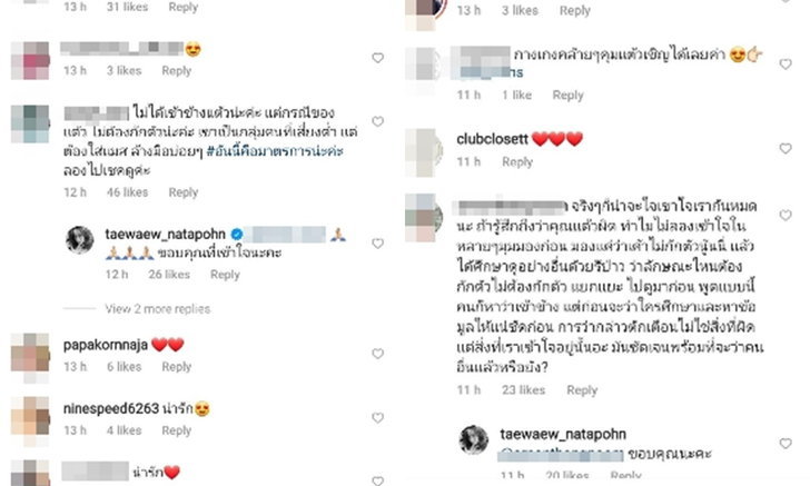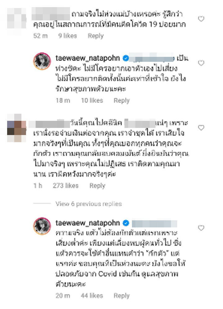 ការរិះគន់ចាស់នៅមិនទាន់បាត់ នៅសុខៗ Taew មានការរិះគន់ថ្មីកើតឡើងទៀត នៅពេលដែលអ្នកបណ្ដាញសង្គមឃើញសាម៉ីខ្លួននៅគ្លីនិក មួយកន្លែងទើបមានការចូលមកដាក់សំនួរនៅក្នុង IG របស់នាងថា ដែលប្រាប់ថាឃុំខ្លួនហេតុអីមិនធ្វើតាមដែលនិយាយ ហើយនៅមានជាច្រើនសម្លេងទៀតដែលចូលទៅសរសេររិះគន់ចំពោះទង្វើរបស់នាង