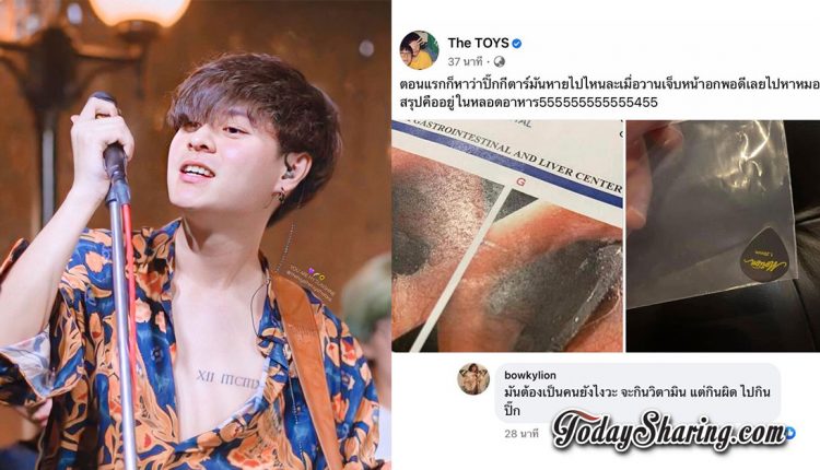 កាលពីប៉ុន្មានថ្ងៃមុននេះ តារាចម្រៀងប្រុសថៃមួយរូបគឺលោក The Toys បានបង្ហោះរូបថតដែលប្រដាប់កេះហ្គីតារបស់លោក បានទៅជាប់នឹងក្នុងបំពង់អាហាររបស់លោក ទាំងដែលលោកមិនដឹងខ្លួន។