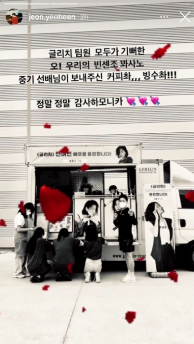 ដោយថ្មីៗនេះទោះបីរឿងភាគ Vincenzo ដែលទាំងគូបានសម្ដែងរួមគ្នាបានថតចប់ចាក់បញ្ចាំងរួចរាល់ ក៏តួឯកទាំងពីរដួងនៅតែមានទំនាក់ទំនងល្អនឹងគ្នា។ នៅក្នុងការចាប់ផ្ដើមថតរឿងភាគថ្មីមួយទៀតរបស់តារាស្រីនាង Jeon Yeo-been លោក Song Joong-ki ក៏បានមកសម្ដែងក្ដីត្រេកអរម៉ៅឡានកាហ្វេរឡាននំមកឲដល់កន្លែងថតតែម្ដង។ ឃើញមិត្តភាពរបស់អ្នកទាំងពីរពេលនេះ រឹតធ្វើឲអ្នកគាំទ្រនឹកដល់ភាពផ្អែមល្ហែមក្នុងរឿងដែលទាំងគូសម្ដែងរួមគ្នាផងដែរ។