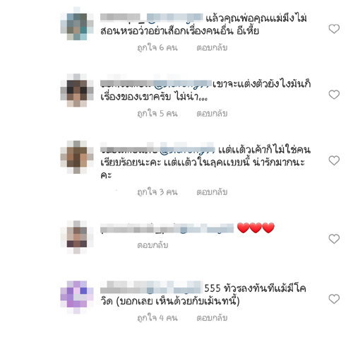 ហើយខាងក្រោម comment ខាងលើនិង ក៏បានជះផលអោយអ្នកបណ្ដាញសង្គមផ្សេងៗទៀត ដែលបានឃើញមកចូលរួមទាស់ទែងសំដីគ្នាទៅវិញទៅមកយ៉ាងខ្លាំង មានទាំងប្រាប់ថា ជាម៉ែឪរបស់គេមែន, សុំសួរត្រលប់ទៅវិញថាហេតុអ្វីចេះដឹងរឿងជីវិតរបស់ដទៃអីណាស់ណា, ទទួលដើរតួជាអ្នកគិតជំនួស, គេចង់តែងខ្លួនយ៉ាងម៉េចវាជារឿងរបស់គេ មិនគួណា…..ហើយនៅមានច្រើនទៀត