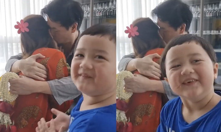 តែពេញចិត្តបំផុតនៅពេលម៉ាក់ៗ យកកម្រងផ្កាមកអោយប៉ាៗ ហើយប៉ាៗក៏អោបថើបម៉ាក់ធ្វើអោយអូន Phayu ជាអ្នកភ្លក់នំខេកញញឹមអឹមអៀនជាខ្លាំង ឡើងហ្វេនៗកើតអាការខ្នាញ់ចំពោះ Phayu ណាស់