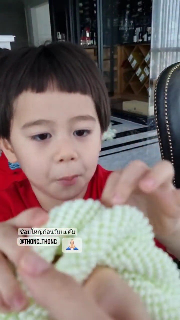ហើយម៉ាក់ Chompoo បានអគុណកូនប្រុសទាំងពីរ ព្រមទាំងសួរទៀតថា “ថើបម៉ាក់ហើយឬនៅ?” មុននិងអូន Phayu កូនប្រុសពៅធ្វើមាត់ថើបតាមការស្នើរសុំ