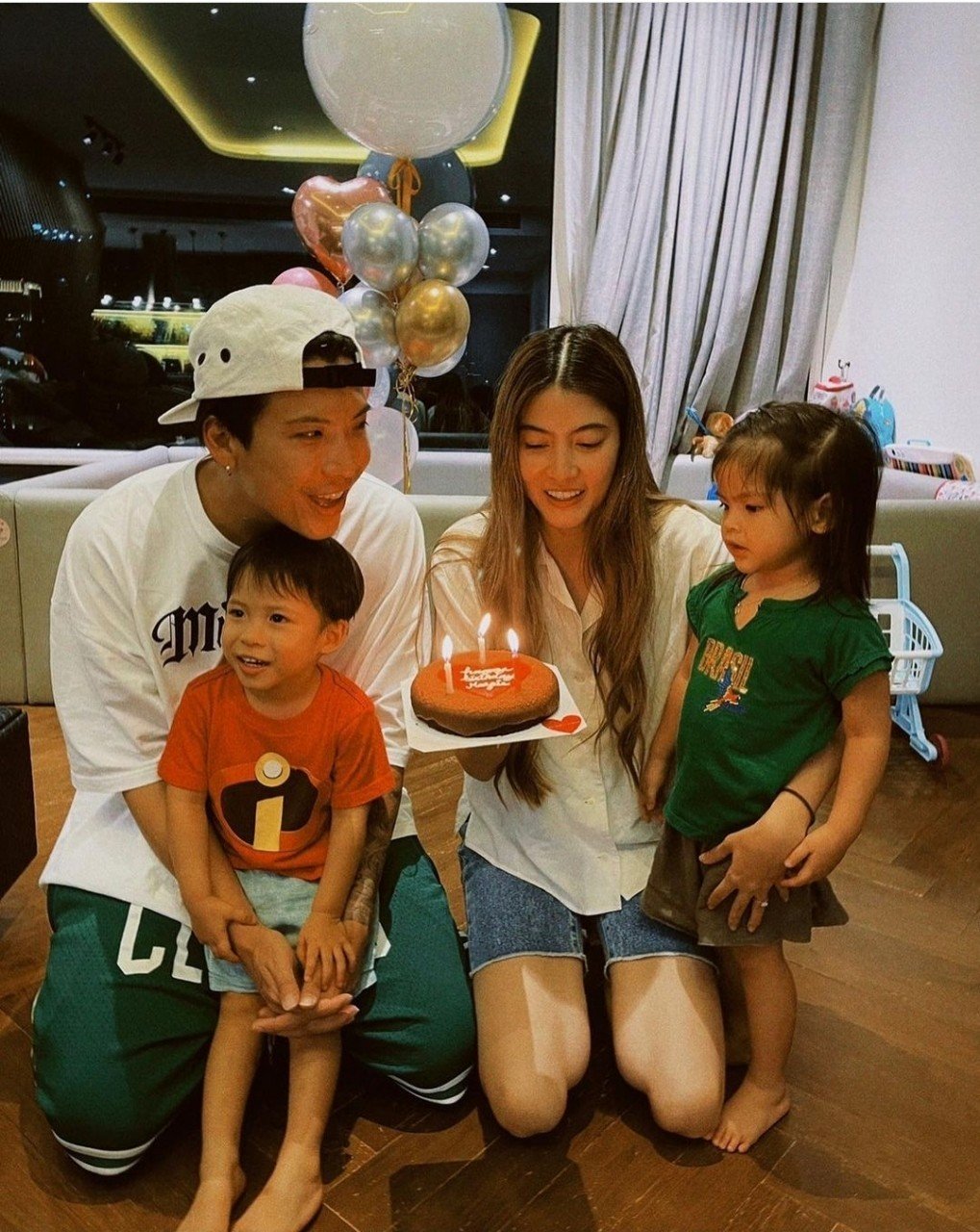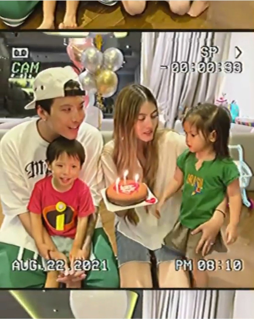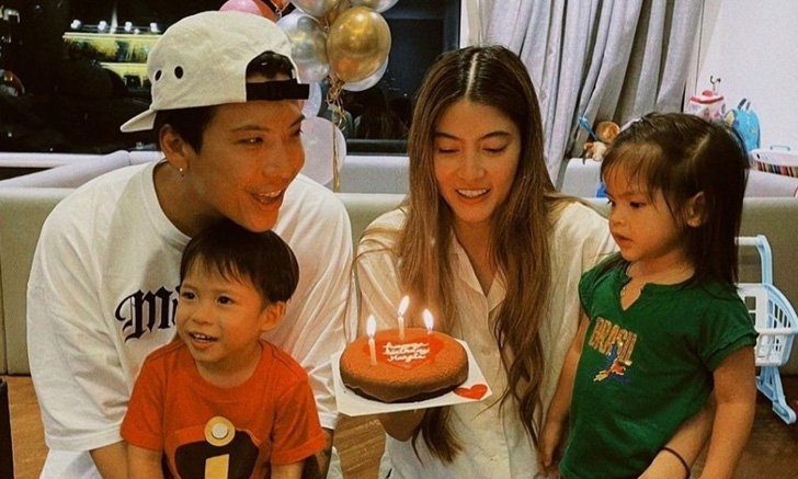 ដោយ Margie បានផុសរូបភាពជុំគ្រួសារមានស្វាមីនិងកូនៗទាំងពីរនៅក្បែរៗខ្លួនលើកនំខេកមួយដុំតូច មកបន្ថែមអោយបរិយាកាសកាន់តែពេញលេញ “Thx for all wishes everyone. Today is more than perfect with the two monkeys and daddy bear 22/08/2021 #birthdaygirl #imahappygirl”