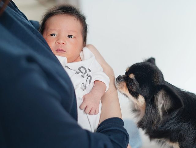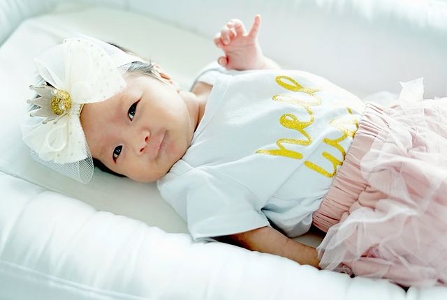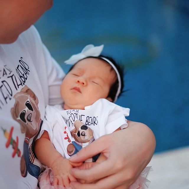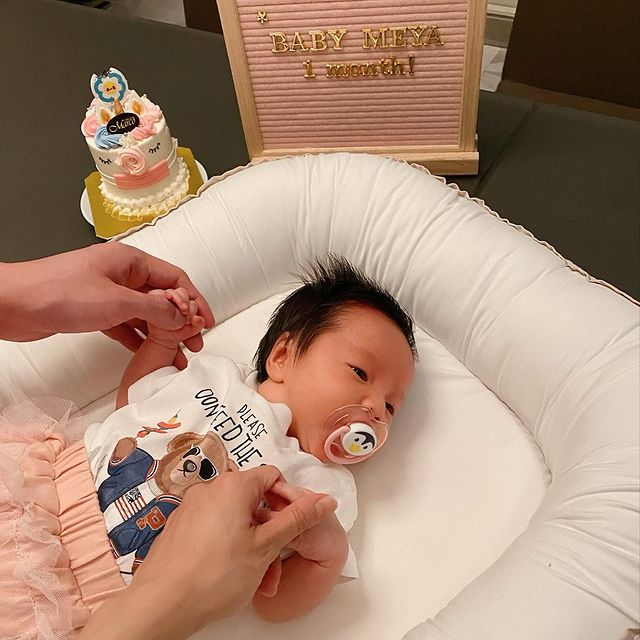 ដោយមានឃ្លាអធិប្បាយពីចិត្តថា “អូនកើតបាន 1ខែហើយចា surprise ពីលោកប៉ា អាវគូពីអ្នកម៉ាក់ គិតថា Maya ប្រហែលជាយល់ចា   #MekYardMeya”