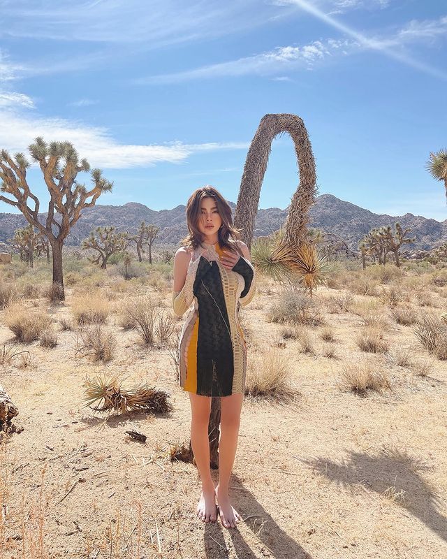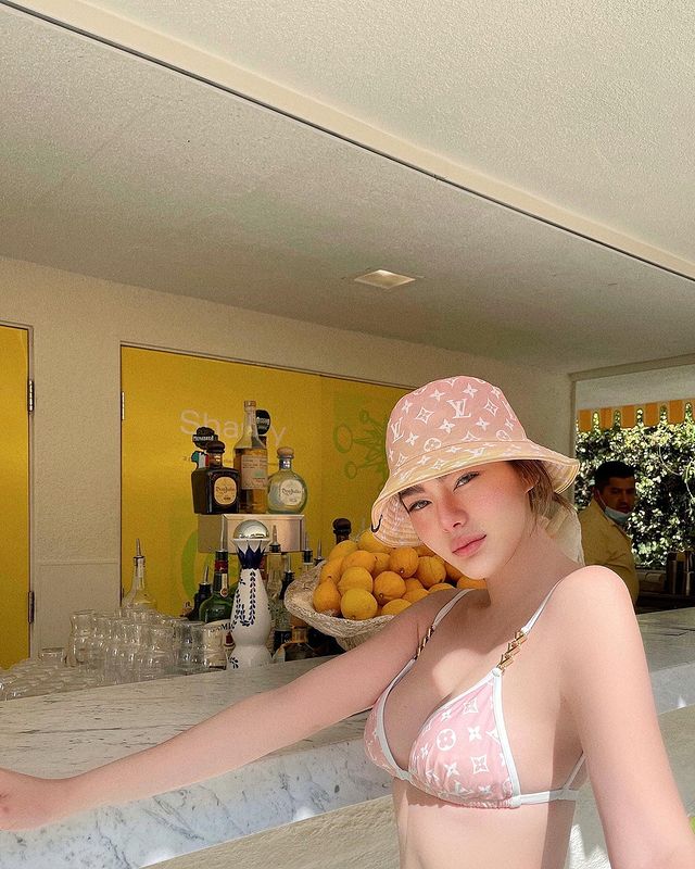 ហើយរូបភាបស្អាតៗរបស់នាងជាក់ស្ដែង ដែលស្លៀកប៊ីគីនីពណ៌ផ្អែមស្រទន់នៅមាត់ស្រះហែលទឹក រឿងនេះសូមប្រាប់ថាស្បែកពិតជាសខ្ចីម៉ត់រលោងគ្មានចន្លោះណាតែម្ដង ចាំងភ្នែកអ្នកមើលអស់ហើយ អ្វីដែលសំខាន់នៅមានឃ្លាមកជាមួយរូបទៀតថា “ហាលថ្លៃយ៉ាងណាក៏មិនខ្មៅ”
