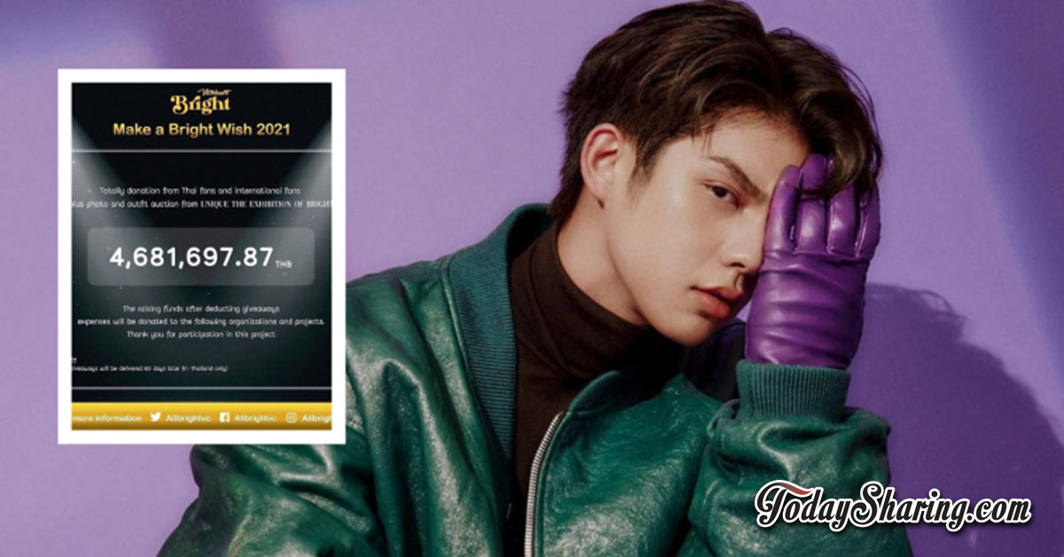Bright ជាតារ៉ាសម្តែងកំលោះល្បីល្បាញរបស់ប្រទេសថៃ ដែលមិនថាធ្វើអ្វីទេគាត់តែងតែមានហ្វែនតាមនិងចាំជួយគាំទ្រគ្រប់ពេលវេលា ថ្មីៗនេះគាត់និងអ្នកគាំទ្របានបង្កើតរឿងរ៉ាវល្អមួយទៀតសម្រាប់សង្គម ដោយនាំគ្នារួមធ្វើការដេញថ្លៃរូបដើម្បីបរិច្ចាគអោយ Project “Make A Bright Wish 2021” ដែលក្រុមអ្នកគាំទ្របានរៀបចំចាត់ចែងឡើងដើម្បីធ្វើបុណ្យបរិច្ចាគទៅដល់មូលនិធិនិងអង្គការជួយសង្គមរួមគ្នា។