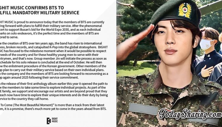ក្រុមហ៊ុន Big Hit Music បានចេញសេចក្តីប្រកាសថាសមាជិកទាំងអស់របស់ក្រុម BTS នឹងបំពេញតួនាទីជាពលរដ្ឋរបស់ប្រទេសយ៉ាងខ្ជាប់ខ្ជួន។ Jin ក្នុងនាមជាសមាជិកដែលមានអាយុច្រើនជាងគេ នឹងចូលបម្រើពលទាហាបន្ទាប់ពីចេញអាល់ប៊ុមថ្មីហើយពោលគឺចាប់ពីចុងខែតុលាឆ្នាំ ២០២២ នេះតទៅ។