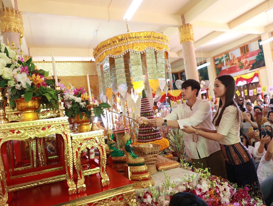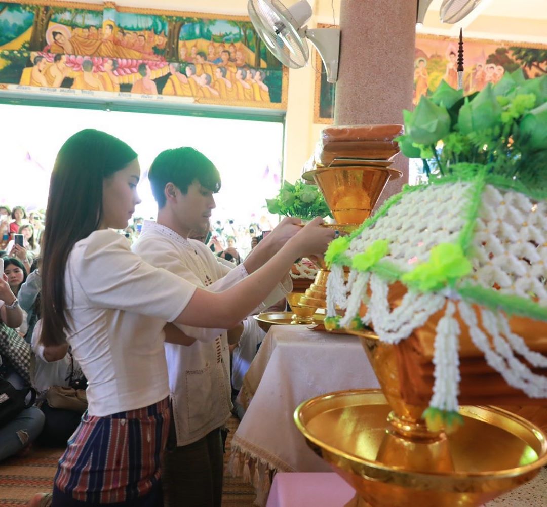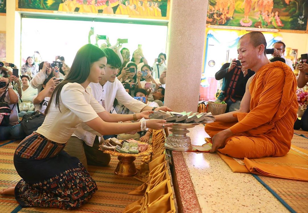ជាក់ស្ដែងកាលពីពេលថ្មីៗនេះ អ្នកទាំងពីរបានធ្វើឲ្យមហាជនជាច្រើនភ្ញាក់ផ្អើល និងលាន់មាត់សរសើរគ្រប់គ្នា នៅពេលឃើញអ្នកទាំងពីរបានដឹកដៃគ្នា រួមជាមួយគ្រួសារទៅធ្វើបុណ្យរួមគ្នានៅឯវត្តមួយកន្លែង និងថែមទាំងប្រគេនលុយដល់ព្រះសង្ឃរហូតដល់ ២ ២៥២ ១៨៣ បាត ប្រមាណជាជិត ៧៥០០០ ដុល្លារអាមេរិក ថែមទៀតផង។