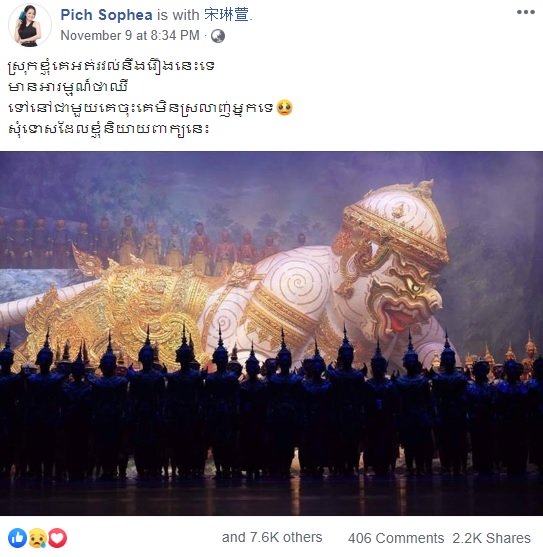 កាលពីពេលថ្មីៗនេះតារាចម្រៀងស្រីល្បីឈ្មោះអ្នកនាង ពេជ្រ សោភា បានធ្វើឲ្យមហាជនជាច្រើនភ្ញាក់ផ្អើល ក្រោយអ្នកនាងបានផុសរូបភាពមួយសន្លឹករបស់សិល្បៈថៃ ដែលមានទម្រង់ដូចល្ខោនខោលខ្មែរ និងភ្ជាប់ជាមួយសារឈឺចិត្តមួយឃ្លារ ធ្វើឲ្យអ្នកលេងបណ្ដាញសង្គមចែករំលែកច្រើនផងដែរ។