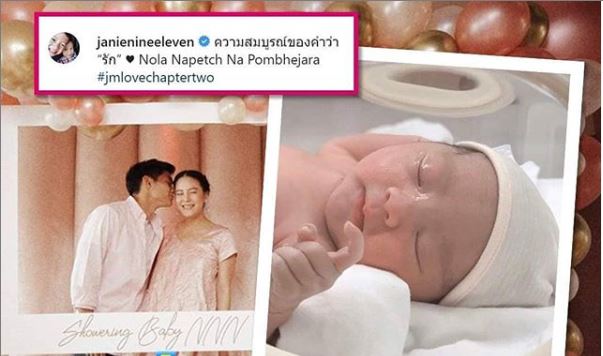 ក្នុងនោះផងដែរ អ្វីដែលកាន់តែធ្វើឲ្យមហាជននិងអ្នកគាំទ្រជាច្រើនកាន់តែចាប់អារម្មណ៍នោះគឺ កូនដំបូងរបស់តារាស្រីរូបនេះ គឺជាកូនស្រី ហើយថែមទាំងដាក់ឈ្មោះឲ្យយ៉ាងពិរោះទៀតថា «Nola Napetch Na Pombhejara ហៅ Nola » នេះបើយោងតាមការបង្ហោះក្នុងបណ្ដាញសង្គមអីុនស្ដារក្រាមរបស់ Janie និងស្វាមីនាង។
