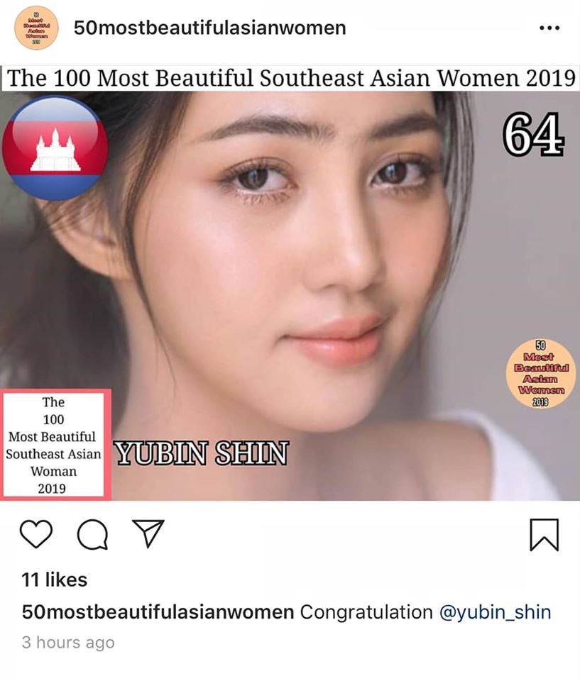 ជាក់ស្ដែងអ្វីដែលកាន់តែធ្វើឲ្យមហាជនជាច្រើនភ្ញាក់ផ្អើលកាន់តែខ្លាំងទៀតនោះ ថ្មីៗនេះស្រាប់តែលេចឡើងនូវមុខមាត់ តារាស្រីខ្មែររូបនេះ នៅក្នុងតារាងតារាស្រីមានសម្រស់ស្អាតបំផុតប្រចាំអាស៊ីឆ្នាំ២០១៩ ក្នុងចំណោម១០០នាក់ «Most Beautiful Southeast Asian women» ក្នុងនោះនាងជាប់ចំណាត់ថ្នាក់លេខ៦៤។