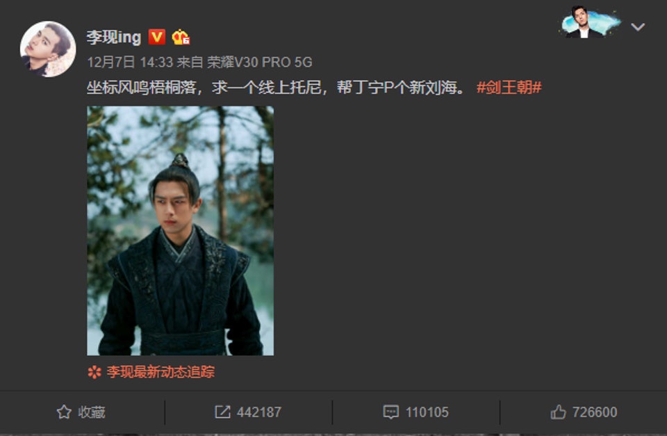 មិនតែប៉ុណ្ណោះ សូម្បីតែតារាសម្ដែងប្រុសរូបនេះផ្ទាល់ក៏ហាក់ដូចជាអស់សំណើចនឹងស្ដាយសក់របស់ខ្លួនឯង ហើយក៏បានបង្ហោះរូបមួយសន្លឹកក្នុងបណ្ដាញសង្គម Weibo របស់ខ្លួន សុំឲ្យអ្នកគាំទ្រជួយកាត់តម៉ូតសក់ ។ យ៉ាងណាមិញ គ្រាន់តែបង្ហោះរូបនោះភ្លាមក៏មានមតិអ្នកគាំទ្របញ្ចេញជាហូរហែរដល់ទៅជាង ១០ ម៉ឺនមតិយោបល់ភ្ជាប់ជាមួយនឹងកម្រងរូបភាពដែលមើលទៅគួរឲ្យអស់សំណើចជាច្រើនដែលឃើញហើយហួសចិត្តតែម្ដង៕