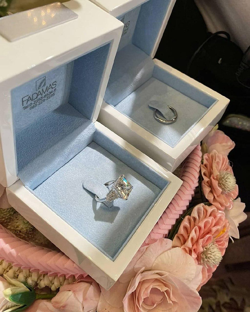ក្នុងនោះផងដែរ អ្វីដែលធ្វើឲ្យហ្វេនៗជាច្រើនកាន់តែភ្ញាក់ផ្អើលថ្មីៗនេះ Sririta បានបង្ហាញចិញ្ចៀនភ្ជាប់ពាក្យរបស់នាង ដែលមានដាំត្បូងពេជ្រដ៏ធំ និងចែងចាំងខ្លាំងណាស់ នរណាឃើញក៏ប្រាថ្នាចង់បានចិញ្ចៀនភ្ជាប់ពាក្យដែលមានតម្លៃបែបនេះដែរ។