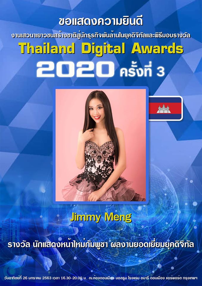 ក្នុងនោះផងដែរ ពានរង្វាន់ដែលតារាស្រីរូបនេះទទួលបានគឺនៅក្នុងកម្មវិធី THAILAND DIGITAL AWARDS 2020 លើកទី៣ ដែលនឹងប្រព្រឹត្តទៅនៅប៉ុន្មានថ្ងៃខាងមុននេះ។