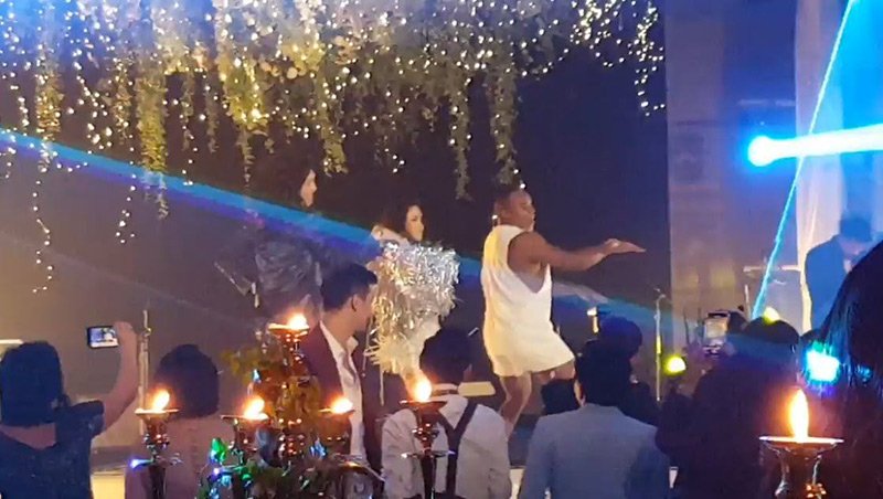 ក្នុងនោះផងដែរ អ្វីដែលធ្វើឲ្យមហាជនគ្រប់គ្នាកាន់តែភ្ញាក់ផ្អើល នៅថ្ងៃមង្គលការនោះ គេបានឃើញតារាស្រី Namcha បានឡើងបញ្ចេញក្បាច់រាំយ៉ាងឡូយ ជាមួយនិងឈុតសម្លៀកបំពាក់បែបសិុចសីុ មើលទៅពិតជាគួរឲ្យចាប់អារម្មណ៍ខ្លាំងណាស់ នរណាឃើញក៏លាន់មាត់សរសើរគ្រប់ៗគ្នាដែរ។