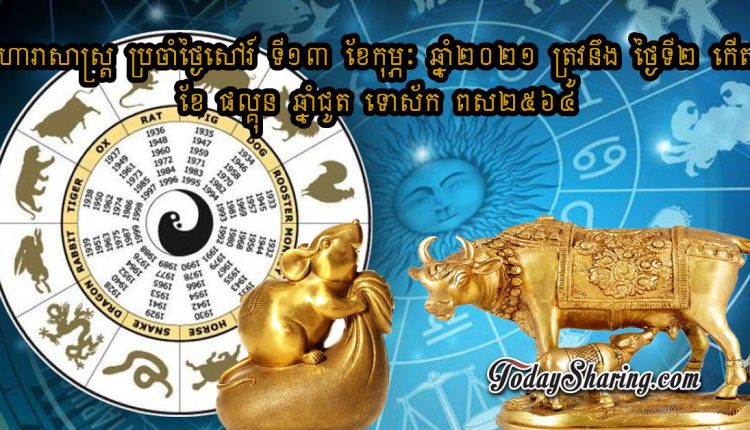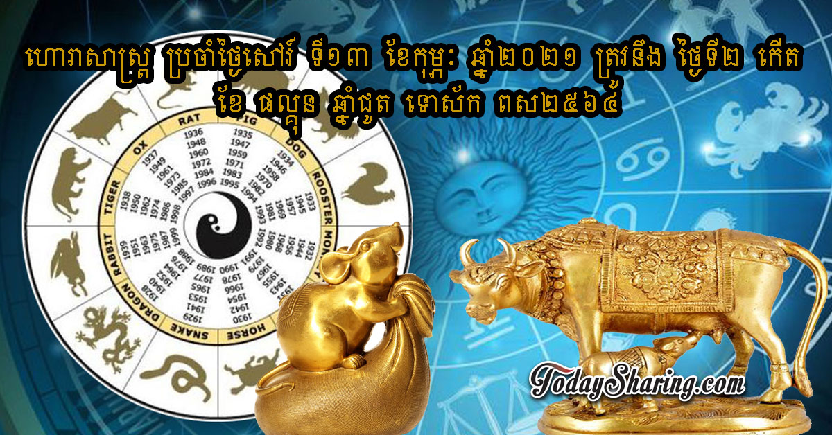 ហោរាសាស្រ្ត ប្រចាំថ្ងៃ សៅរ៍ ទី ១៣ ខែ កុម្ភៈ ឆ្នាំ ២០២១ ត្រូវនឹង ថ្ងៃទី២កើត ខែផល្គុន ឆ្នាំជូត ទោស័ក ពស២៥៦៤