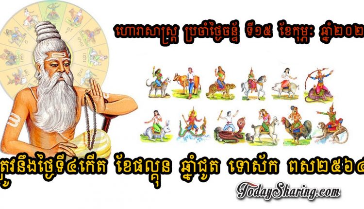 ហោរាសាស្រ្ត ប្រចាំ ច័ន្ទ ទី ១៥ ខែ កុម្ភៈ ឆ្នាំ ២០២១ ត្រូវនឹងថ្ងៃទី ៤កើត ខែផល្គុន ឆ្នាំជូត ទោស័ក ពស២៥៦៤