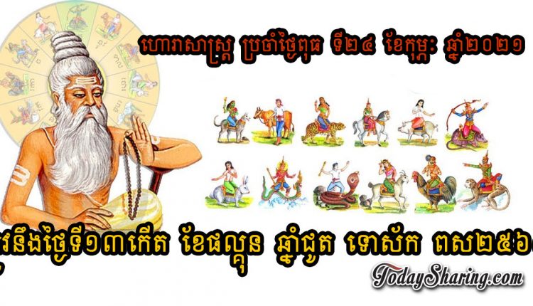 ហោរាសាស្ត្រ ប្រចាំថ្ងៃ ពុធ ទី ២៤ ខែ កុម្ភៈ ឆ្នាំ ២០២១ ត្រូវនឹងថ្ងៃទី ១៣កើត ខែផល្គុន ឆ្នាំជូត ទោស័ក ពស២៥៦៤