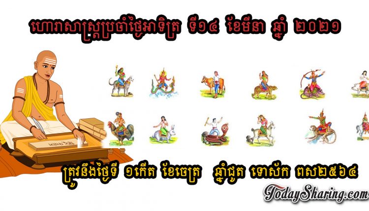 ហោរាសាស្រ្ត ប្រចាំថ្ងៃ អាទិត្យ ទី ១៤ ខែ មីនា ឆ្នាំ ២០២១ ត្រូវនឹងថ្ងៃទី ១កើត ខែចេត្រ ឆ្នាំជូត ទោស័ក ពស២៥៦៤