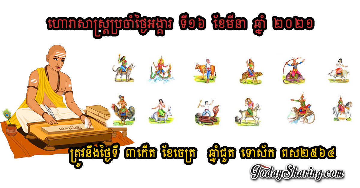ហោរាសាស្រ្ត ប្រចាំថ្ងៃ អង្គារ ទី ១៦ ខែ មីនា ឆ្នាំ ២០២១ ត្រូវនឹងថ្ងៃទី ៣កើត ខែចេត្រ ឆ្នាំជូត ទោស័ក ពស២៥៦៤